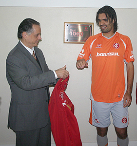 A homenagem a Fernandão contou com a presença de cerca de 50 pessoas, entre jogadores, conselheiros, dirigentes e torcedores. A placa foi inaugurada no vestiário da equipe profissional, logo após o último treino para a partida contra o Juventude, que será disputada neste sábado. O Internacional presenteou Fernandão ainda com uma réplica da placa e a seqüência fotográfica do gol emoldurada. No final da cerimônia, o meia-atacante retribuiu a homenagem e presenteou o presidente Fernando Carvalho com a primeira camisa comemorativa ao milésimo gol, que leva a sua assinatura no peito e número 1000 às costas. Veja as fotos: