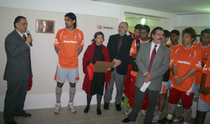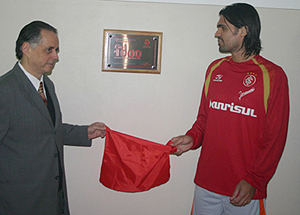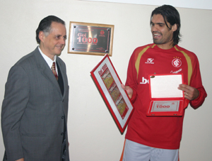Fernandão recebe réplica da placa e a seqüência fotográfica do milésimo