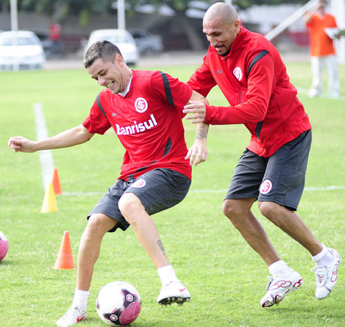 D'Alessandro (E) e Guiñazu trabalham com bola na reta final de recuperação