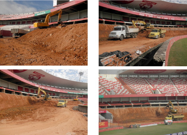 Também já foram demolidos os antigos vestiários da arbitragem e categorias de base (localizados ao lado da entrada principal do setor administrativo do Clube). O gramado A também já está passando por reforma e será um dos setores que abrigará o canteiro de obras.