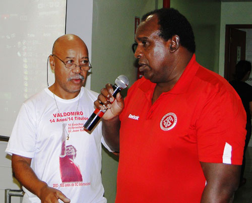 Ex-companheiro de time, Caçapava (D) discursou para Valdomiro