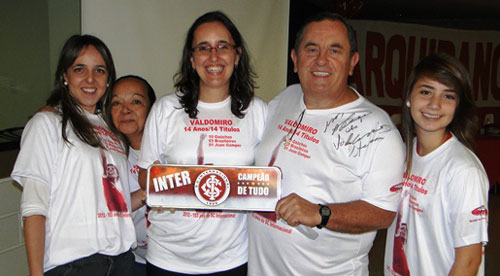 Além de comemorar os 103 anos do Internacional, na noite da última terça-feira (17/04), o blog Arquibancada Colorada (www.arquibancadacolorada.com.br) reuniu amigos e torcedores para homenagear o ídolo Valdomiro. Estiveram presentes diretores e ex-jogadores já laureados pelo Arquibancada Colorada, como Dorinho, Cléo e Flávio, assim como o também ex-atleta Caçapava. Além deles, maracaram presença cônsules da capital e do Interior e mais aproximadamente três centenas de sócios e torcedores em geral. As dependências do Sargento Expedicionário Geraldo Santana foram tomadas.