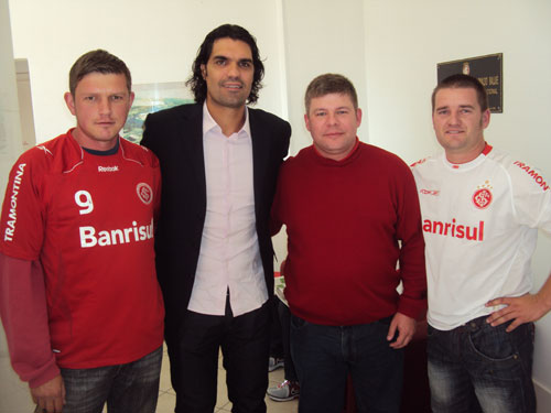 Em visita ao Beira-Rio, membros do consulado, Ricardo Diefenbach, Jaime Heilmann e Maico Schneider, entregaram o convite ao ídolo e diretor Fernandão