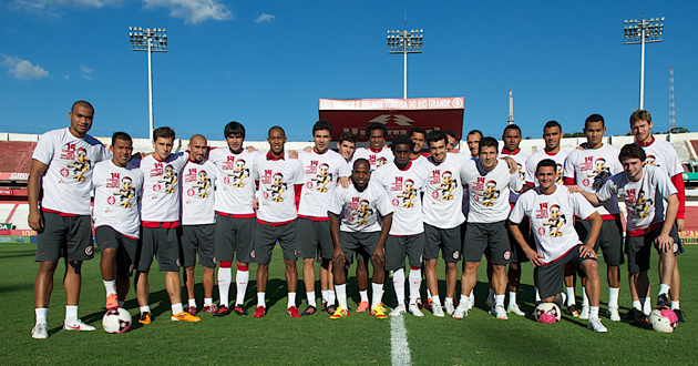 Os jogadores do Internacional vestiram a camisa da 14ª Corrida para Vencer o Diabetes, organizada pelo Instituto da Criança com Diabetes (ICD-RS). Antes do treino desta sexta-feira (27/04), os atletas usaram a camiseta para demonstrar mais uma vez o apoio do Clube às iniciativas para combater a doença. As camisas ainda foram autografadas e vão ser dadas a torcedores que curtirem a página do instituto no facebook (http://www.facebook.com/icdrs), de acordo com um determinado número de curtidas que for atingido.