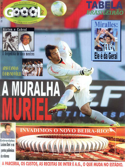 O goleiro colorado Muriel é o principal destaque da edição número 168 da revista Goool. O arqueiro colorado vem se destacando nesta temporada de 2012 com grandes atuações, como no empate em 1 a 1 contra o Santos, no Beira-Rio, onde foi muito elogiado pela imprensa nacional.