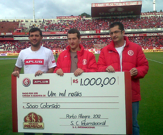O sócio em dia Cristiano Ghilardi (matrícula 139242.00) recebeu o cheque-simbólico do prêmio de R$ 1 mil ganho na promoção Fidelidade Premiada, em solenidade realizada antes do Gre-Nal deste domingo, à beira do campo do Beira-Rio. Você pode ser o próximo contemplado! Mantenha a mensalidade em dia!