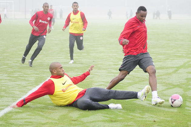 Sob uma espessa neblina, o Internacional treinou na manhã desta quarta-feira no campo suplementar do Beira-Rio. O técnico Dorival Júnior começou a esboçar o time que irá a campo contra o Caxias no próximo domingo, às 16h, no Centenário, no jogo de ida da final do Gauchão.