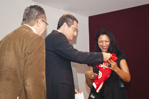 Durante o evento, a palestrante recebeu uma camiseta do Inter das mãos dos dois representantes colorados. A gestão do Inter foi à palestra em virtude de Zahira ser uma das principais autoridades do mundo em retorno sobre investimentos em Copa, via análise da Copa da África. Ela é economista formada em macroeconomia internacional e criadora do site designingsouthafrica.com. Recentemente também foi lançado o site www.designingbrazil.com/.