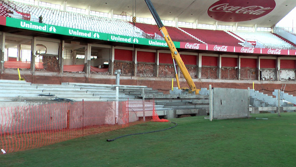 Metade da arquibancada inferior já foi demolida