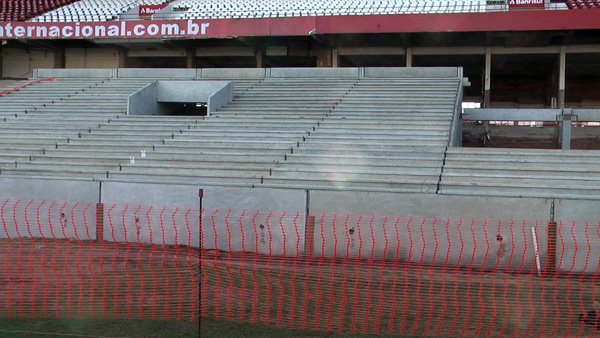 Os serviços de fundação da futura arquibancada já foram concluídos e aguardam apenas a retirada das cabines de imprensa para continuar. As novas estruturas para abrigar os jornalistas serão instaladas no lugar das casamatas das equipes visitantes, que foram movidas para atrás da goleira do lado do Gigantinho, rente à mureta que separa o gramado da arquibancada. No quadrante 1, os serviços de blocos de fundação e a fabricação dos pré-moldados das arquibancas foram encerrados.