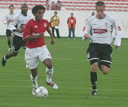 Aos 46, um golaço. Diego driblou o zagueiro pelo lado direito, entrou na área e cruzou rasteiro para Nilmar. O atacante desviou com o calcanhar, ?de letra?, para marcar o quarto gol do Inter e o seu sexto no campeonato.