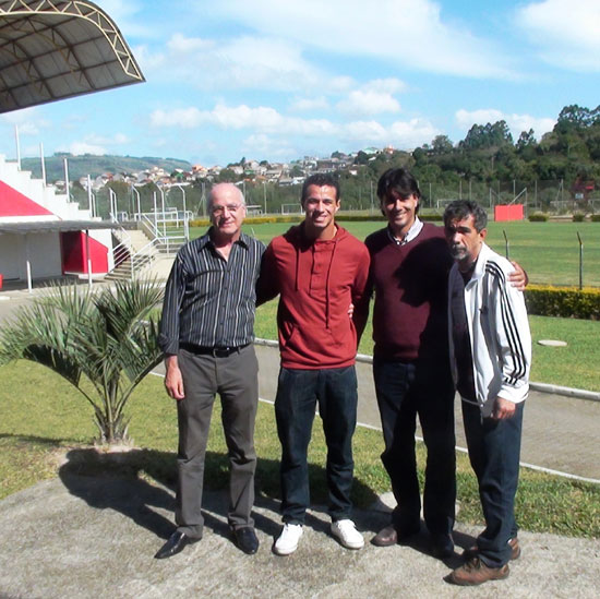Orestes Portolan (E) e Jorge Andrade (3º da E para D) receberam Damião, junto de seu pai, no centro de treinamento das categorias de base em Alvorada
