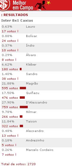 Enquete: D'Alessandro, o melhor em campo contra o Caxias