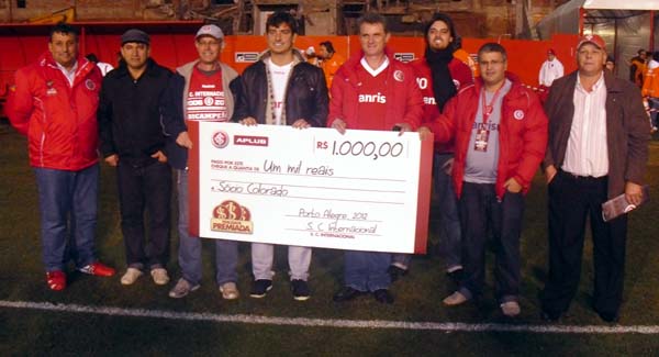 Antes da partida, o Inter também entregou o cheque simbólico no valor de R$ 1 mil para os sócios abaixo listados. Eles foram contemplados na promoção Fidelidade Premiada.
