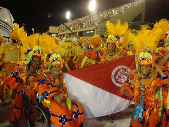Bandeira do Inter em meio ao desfile do Salgueiro, no Rio de Janeiro
