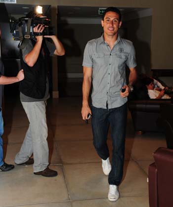 Zagueiro Álvaro na chegada ao Centro de Eventos