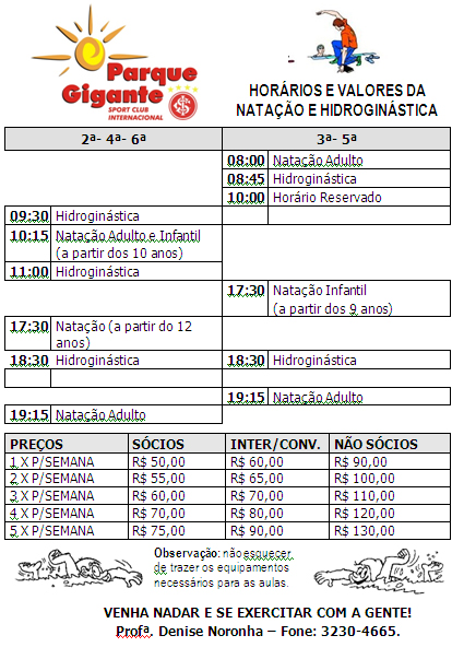 Observação: em dias de jogos realizados no estádio Beira-Rio, a piscina térmica encerrará suas atividades cinco horas antes do início do jogo.