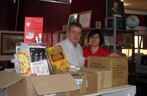 Presidente da FECI, Cesardo Vignochi (E), e a bibliotecária Ana Bicca