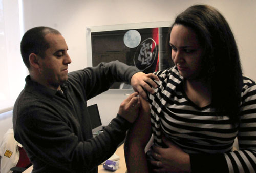 Enfermeiro Vladimir Dutra aplica vacina nos funcionários do Internacional